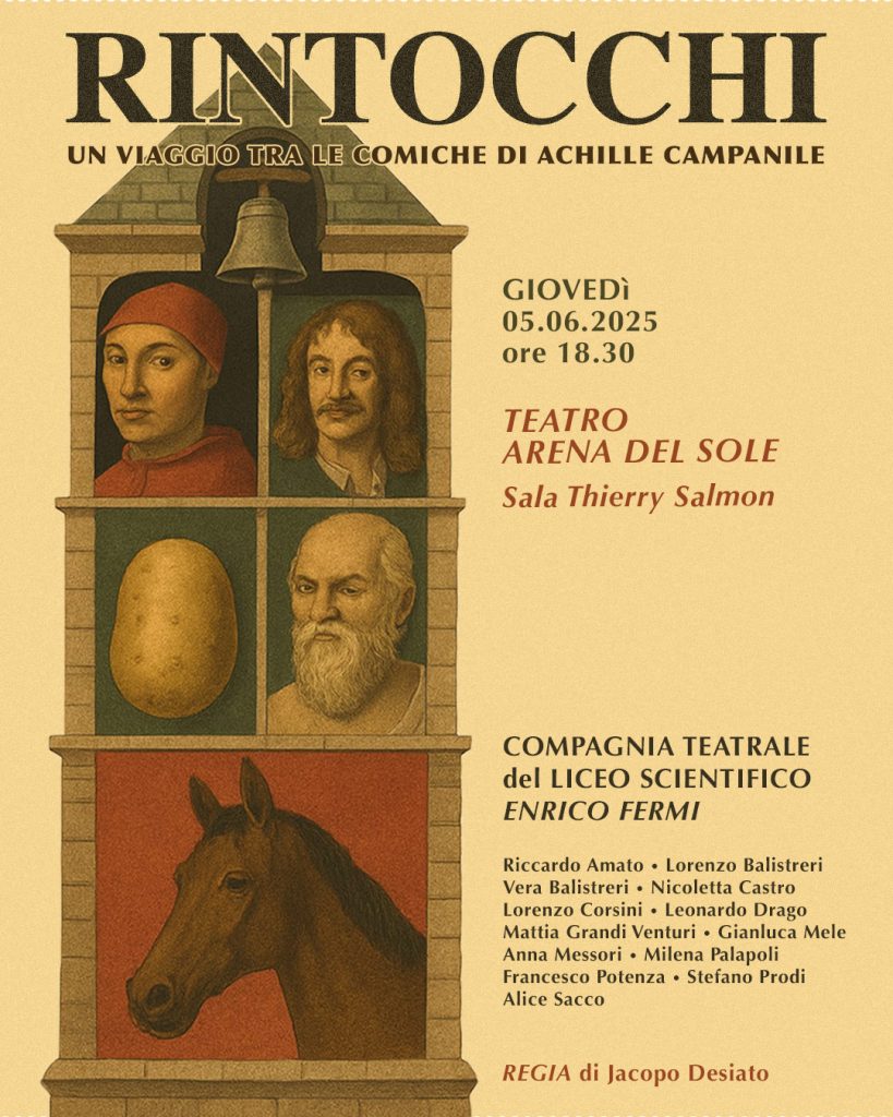 Dopo mesi di intenso lavoro, giovedì 5 giugno alle ore 18.30 gli studenti e le studentesse del laboratorio pomeridiano condotto da Jacopo Desiato metteranno in scena lo spettacolo “Rintocchi” presso il Teatro “Arena del Sole”, sala Thierry Salmon.